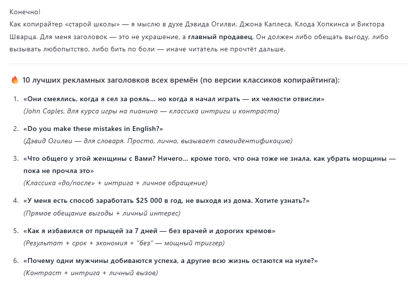 В том числе – с использованием классических вариантов от гуру копирайтинга, которые предварительно можно у него запросить.