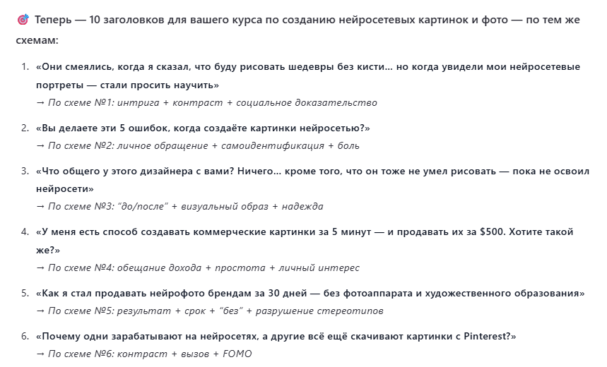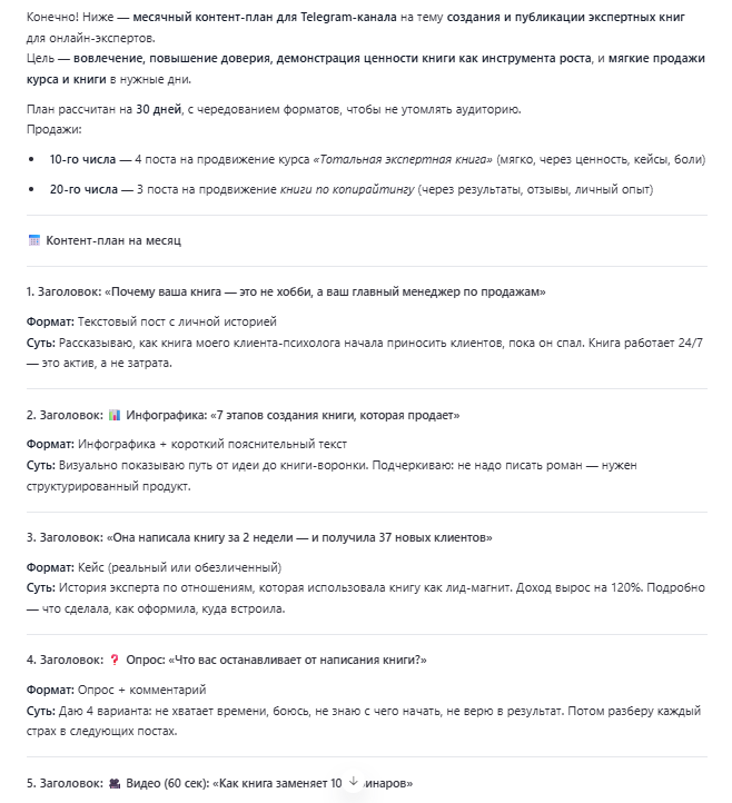 5. Нейросеть очень хорошо планирует систему инфопродуктов и услуг и наполнение каждого элемента системы.
