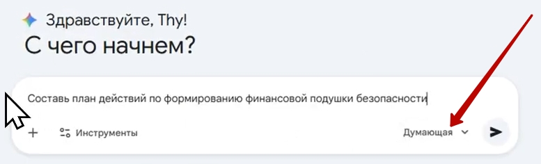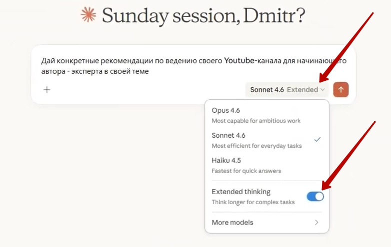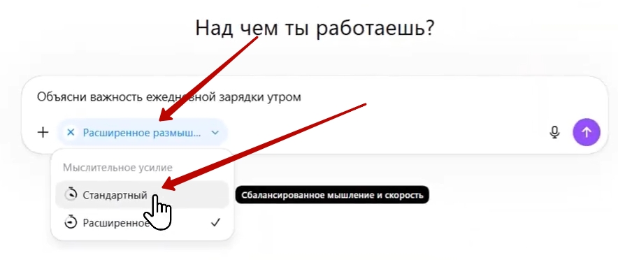 - Выберите модель с расширенным мышлением: