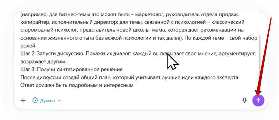 Такой подход с добавлением ролей и последующей дискуссией вы можете использовать в любой нейросети.