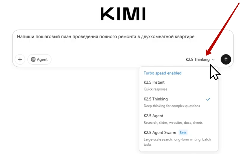 - Выберите режим мышления: