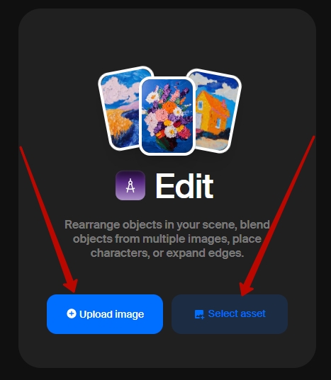 - Далее нужно выбрать картинку, которую вы хотите отредактировать – можно загрузить картинку с компьютера или выбрать из ранее сгенерированных: