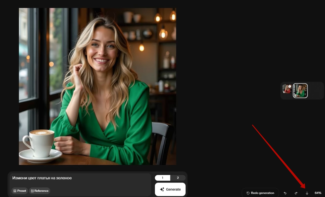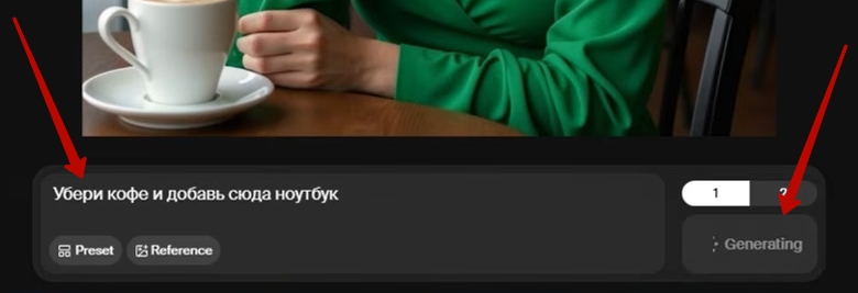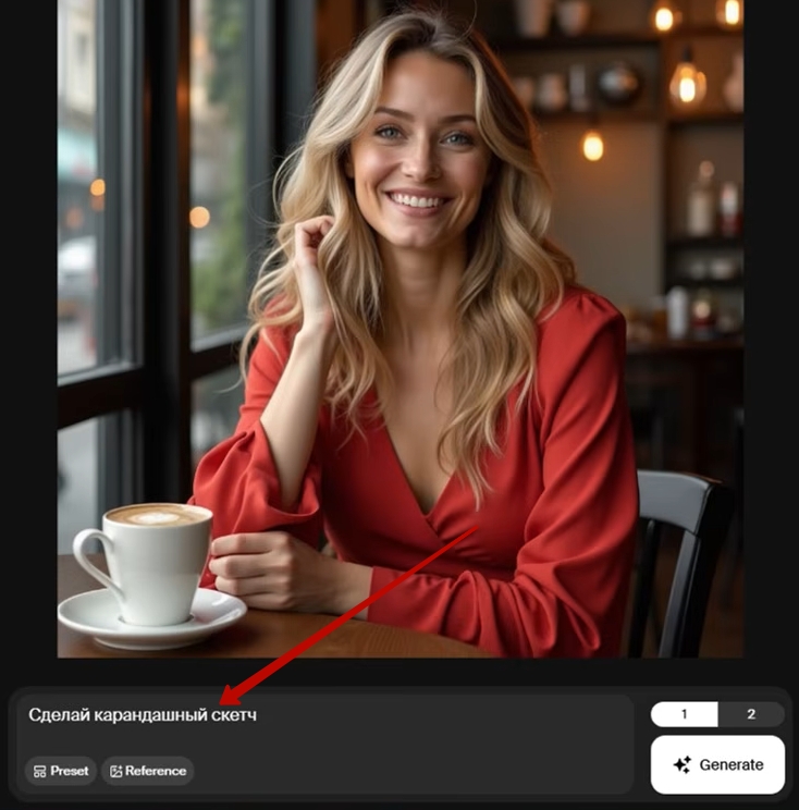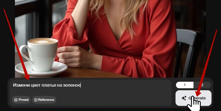 - Здесь можно написать промпт на русском языке – что вы хотите изменить, например: