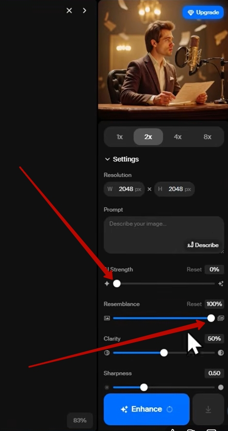 Очень важный нюанс – если вам нужно просто улучшить качество изображения без изменения того, что на нем изображено, то нужно сделать настройки как указано на скрине: