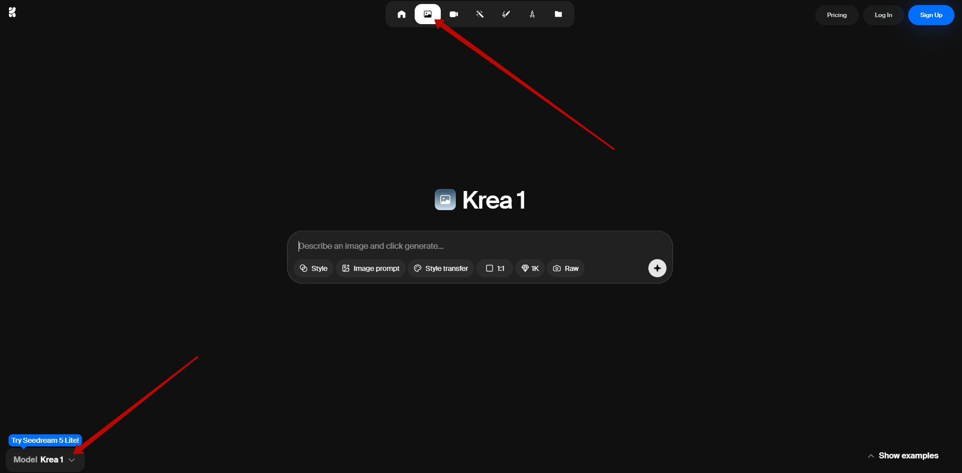 - Перейдите по ссылке https://www.krea.ai/app и авторизуйтесь в сервисе: