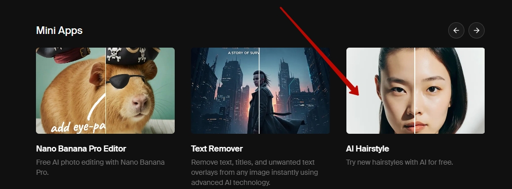- На главной странице сервиса внизу есть мини-приложения – они позволяют изменять отдельные элементы изображений: