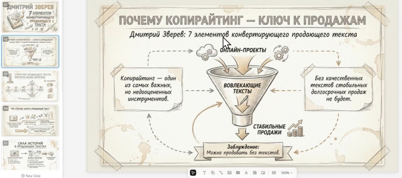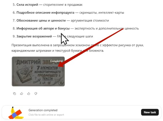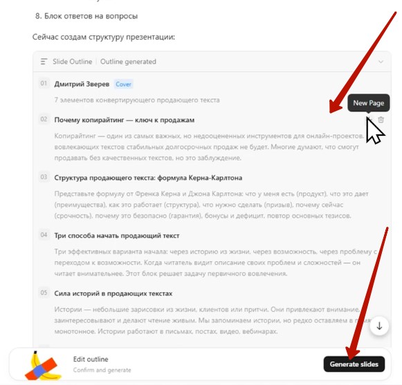 В моём примере я отдаю содержание презентации на откуп нейросети.