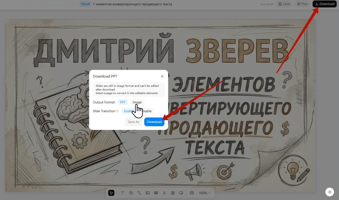 - Чтобы скачать презентацию, нажмите кнопку Download и выберите формат:
