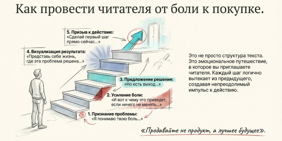 - Выстраивает ли текст эмоциональный мост между проблемой и решением?