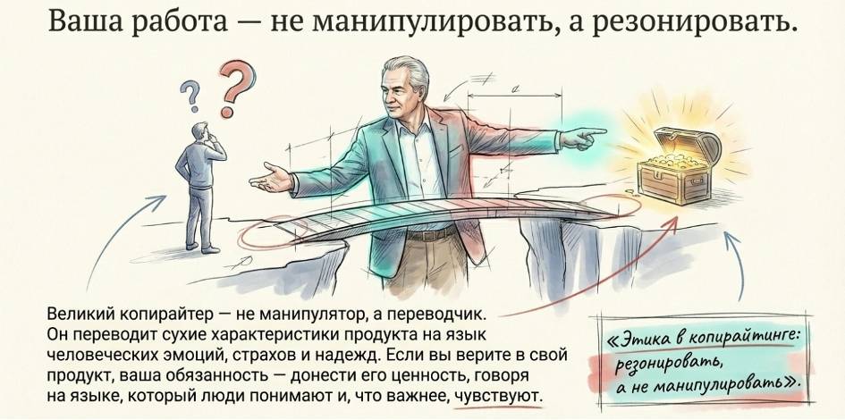 — Но когда ты имеешь дело с реальными эмоциями, которые люди уже испытывают, и предлагаешь решение, которое действительно помогает — это не манипуляция. Это резонанс. Ты просто говоришь: «Я вижу твою боль, и я могу помочь».